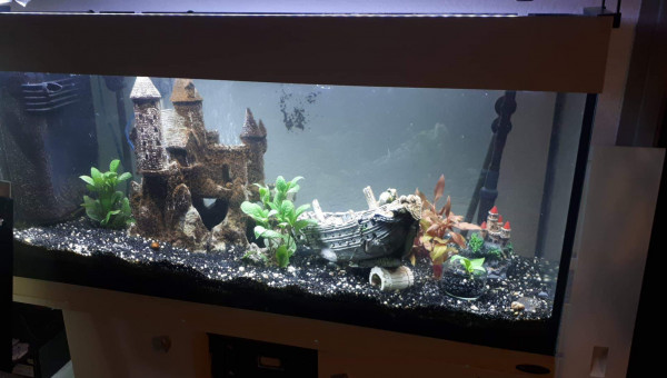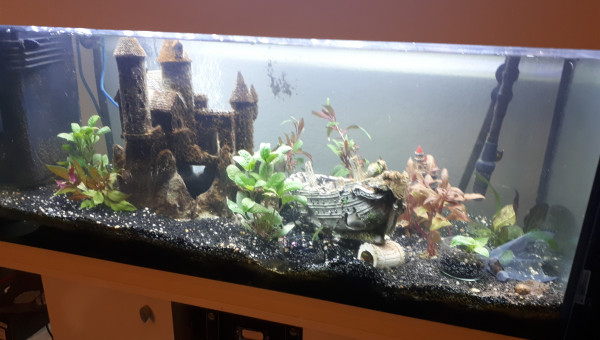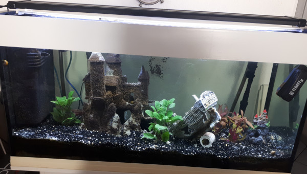 Anciennement aquarium avec que des poissons du lac de Malawi cet aquarium à était mis à l’abandon par un membre de ma famille que j'ai récupéré mais j'ai beaucoup de problème d'algue et de NO3- c'est pour cela qu'il ne reste que le poisson déjà dans le bac et quelque escargot.