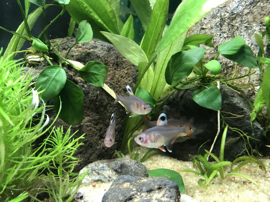 Je dis "aquarium géographique", mais bon, je ne sais pas si ces poissons se côtoient dans la nature. Ils viennent du même sous continent.... Et puis s'il faut faire venir un poisson d'un autre continent pour faire le sale boulot que les autres poissons (ou moi) ne veulent pas faire (nettoyer les vitres, bouffer les escargots ou le caca) et bien je leur donnerai leurs papiers pour vivre ici.... Non mais !