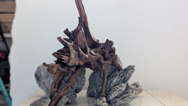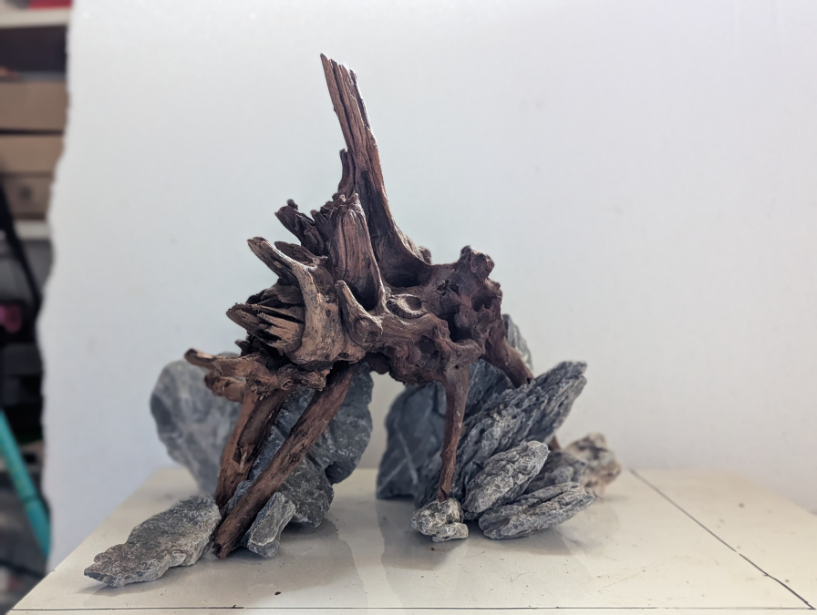 Mise en place du hardscape , sol technique et décors . Installation d'un fog screen en vue d'un rétro-éclairage. Plantes à venir. ?