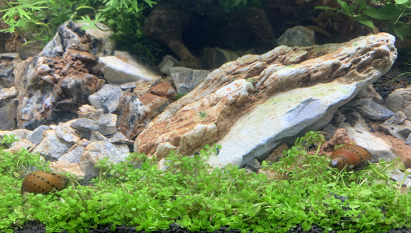 Nouveaux habitants deux Neritinas eau beaucoup moins troubles mais apparition d’algue verte sur une pierre.