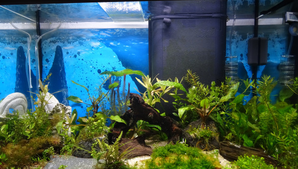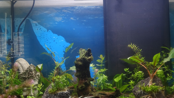 Aujourd'hui pas mal d'algues Vertes alors j'ai nettoyé, j'ai changé 40 litres d'eau contre 40 litres d'eau osmosée. J'ai également injecté 15 ml de Re-Fresh Reef Evolution un Anti Algues Brunes et Vertes, j'ai également ajouté 30 ml d'engrais Dennerle Elixir Plantes. J'ai viré une plante également qui se mourrait.