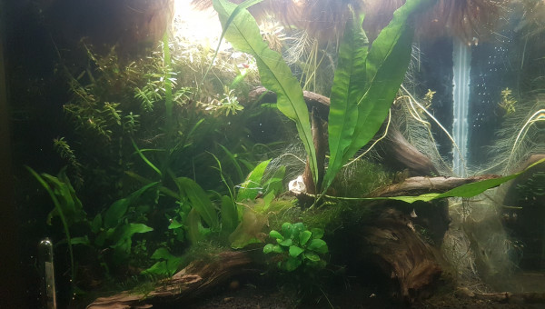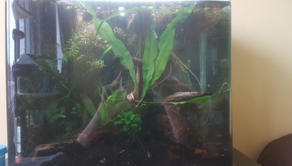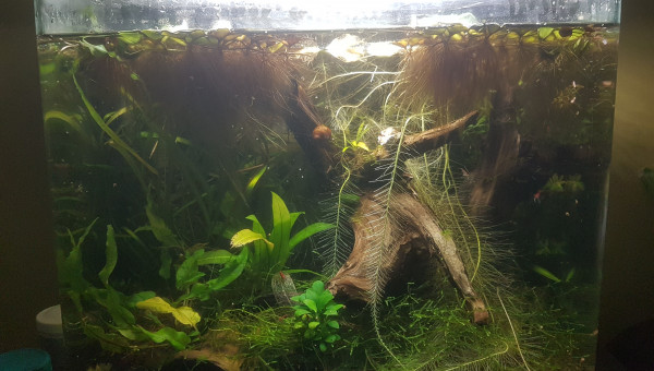 Le bac à lui seul est très vieux. C'est la raison pour laquelle des animaux y ont été introduits avant la dernière mise en eau. La crevette amano et les escargots, je les ai depuis très longtemps.