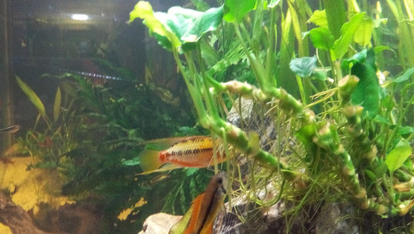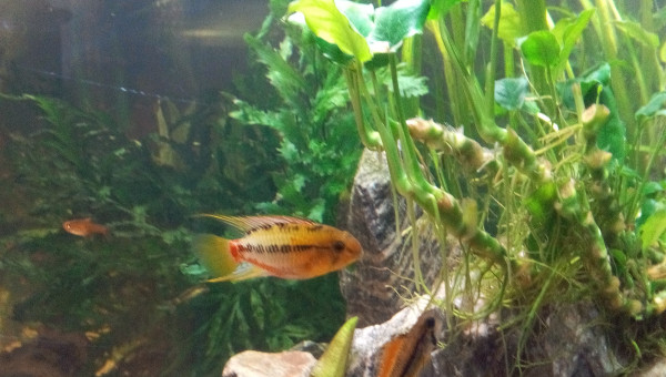 Bon, tout se passe bien, je n'ai pas revu la femelle Agassizii qui comme sa consoeur Hongsloi passe le plus clair de son temps à grenouiller dans les anubias. En revanche, ces messieurs sont bien visibles et Agassizii passe le plus clair de son temps à suivre le Hongsloi et, accessoirement de temps en temps, à lui montrer qu'il est bien là et n'a pas l'intention de s'en laisser conter...