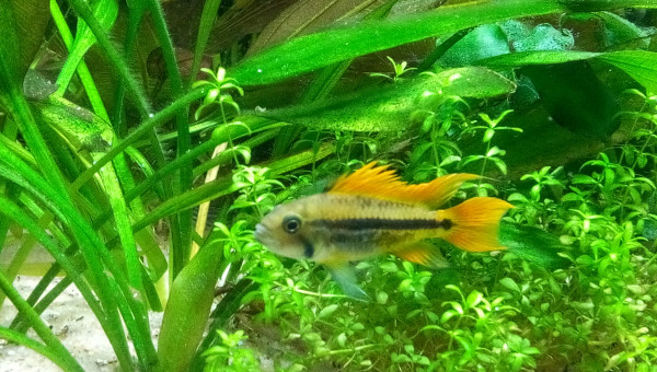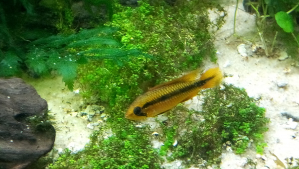Cela n'était pas prévu mais quand je les ai vus, je me suis dit "pourquoi pas ?" et à l'origine, c'était eux qui étaient prévus comme prédateurs dans le bac. Avant de procéder à l'achat, je me suis assurée qu'ils ne pouvaient pas s'hybrider avec les Apistogramma Hongsloi (Complexes différents).
