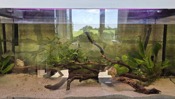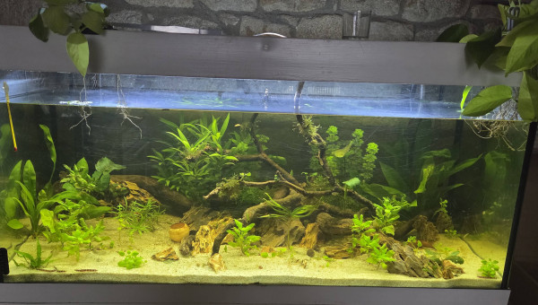 En nourrissant simplement les crevette et kuhli j’avais pas remarqué... Mais aujourd'hui j’ai ajouter un banc de barbus cerise ! Et un bébé tetraodon nain ! Incroyable ! Il on passer quelque semaine dans le 300L !