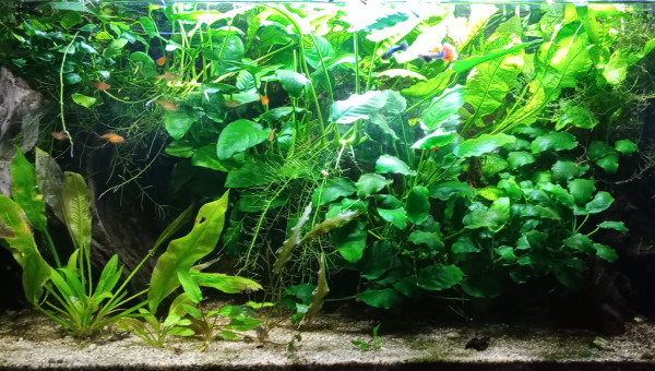 C'est pas férié pour tout le monde aujourd'hui! Madame Physe fait des miracles sur l'anubia pour nettoyer les algues qui ont explosé suite à l'ajout d'engrais liquide il y a 15 jours.