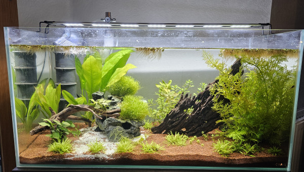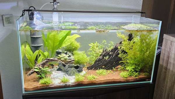 Sol : - JBL aquabasis plus - JBL manado - sable fin de quartz non tranchant Plantes : - salvinia auriculata - pogostemon helferi - helanthium bolivianum 'magdalenensis' - cryptocoryne parva - rotala indica bonsai - hygrophila polysperma - ceratopteris thalictroides - proserpinaca palustris 'cuba' - echinodorus - anubias var nana - anubias var nana 'pinto' - riccia fluitans Animaux : - 11 corydoras pygmaeus - 12 microdevario kubotai - un couple de colisa chuna type sauvage - 1 anentome Helena - 1 neritina - Une dizaine de neocaridina davidii orange sunkist