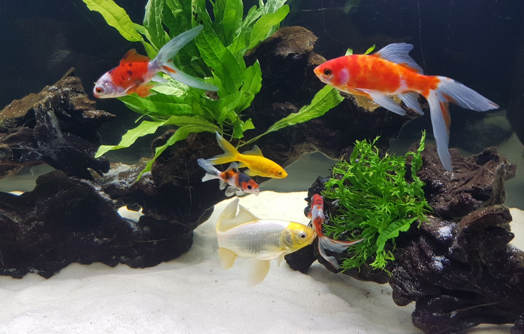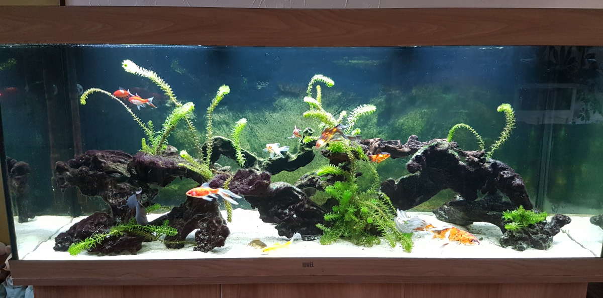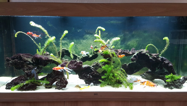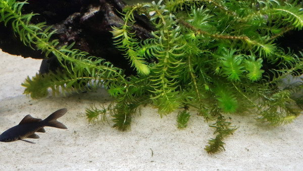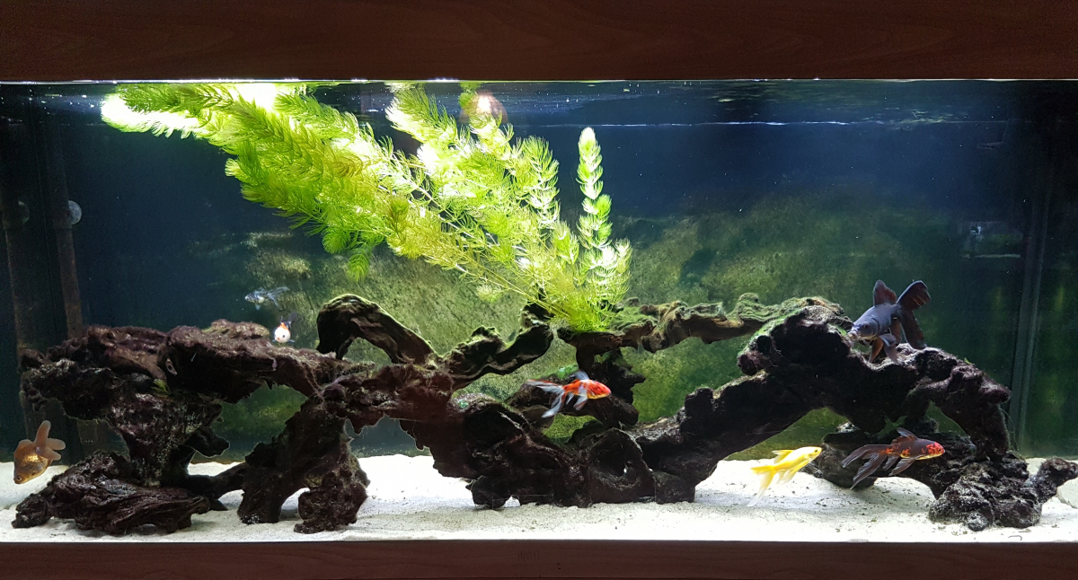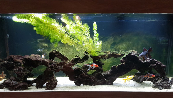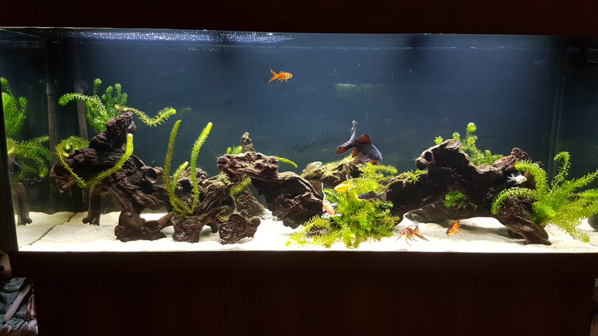 Bac volontairement très simple Tapis de sable de rivière sur 3 cm Racines mopani