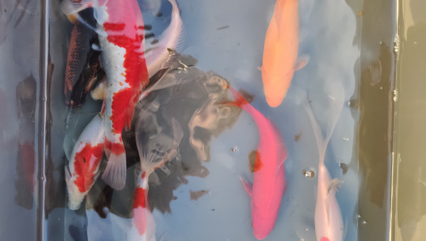La maison de Akai (rouge F), Ki (jaune F), Haku (Sarasa M), Ao et Tancho (Shubunkin F et M), Nishiki Shirohige (Koï Yamabuki M). 2nde génération : Tanuki et Yure (Shubunkin M), Mochi (blanc M hibuna), Atama-Tetsu (orange à tête blanche M hibuna), Shiroyuki (blanc M typé comète), Nori (orange F hibuna), Kita (orange M queue comète), Minami (orange F queue type comète), Tora (orange M queue type comète) Génération 2021 : Ken (F Shubunkin) 08/04/2023 : Shikaku (Koï Kujaku M) 27/04/2023 : Ichigo (F Shubunkin) et Yuzu (F Shubunkin jaune) introduits le 19/06/2023 Génération 2023 : Akuma (M calico à dominante rouge), Ryu (Hibuna orange), Tsuki (Hibuna calico blanc), Taiyo (Hibuna orange), Yoru (Hibuna blanc et orange) 8/11/2024 : Shiloh et Ashley (2 Shubunkin de Bristol) introduits le 17/11/2024 Printemps 2025 : disparition de Tsuki, Taiyo, Ashley et Tancho (possible attaque de héron)