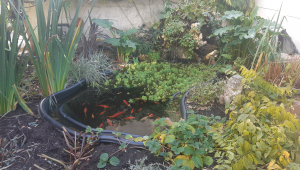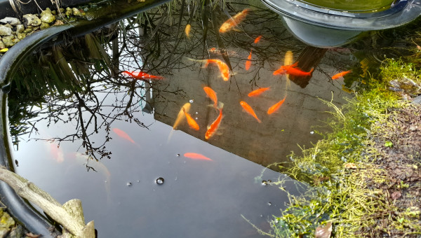 Bassin de 1000 litres avec de nombreux poissons rouge