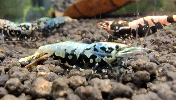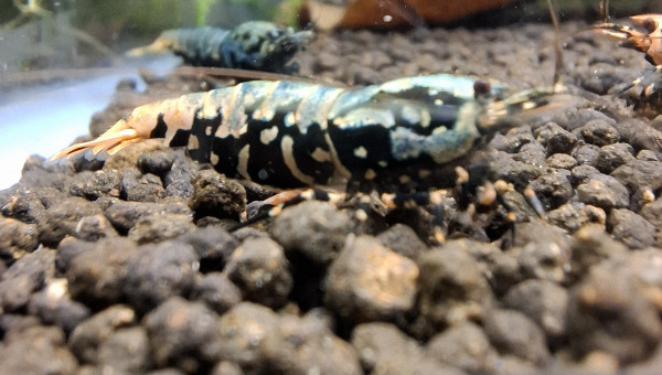 Maintenance spécifique : Eau osmosée reminéralisée aux Sels de Preis ou autres. Ph 6.5 Kh 0 Conductivité 250 μS. Elevées sur sol technique Neo Soil Shrimp.