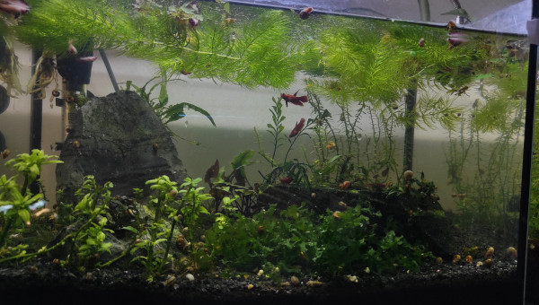 Aquarium de grossissement des alevins de Betta nés le 22 Avril 2021.