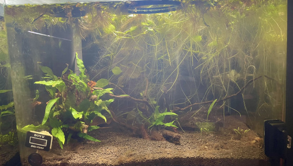 1 mâle et 2 femelles, qui pour l’instant prennent leurs marques. Le mâle est plus timide et encore un peu pâlot, encore un peu jeune aussi. Ils sont issus d’une souche ramenée par un membre du CIL (Communauté Internationale pour les Labyrinthidés) lors d’une expédition aquariophile.