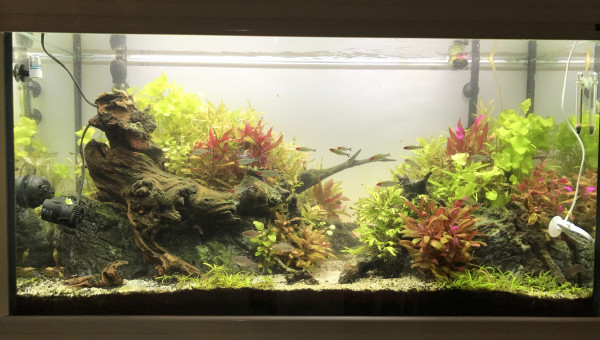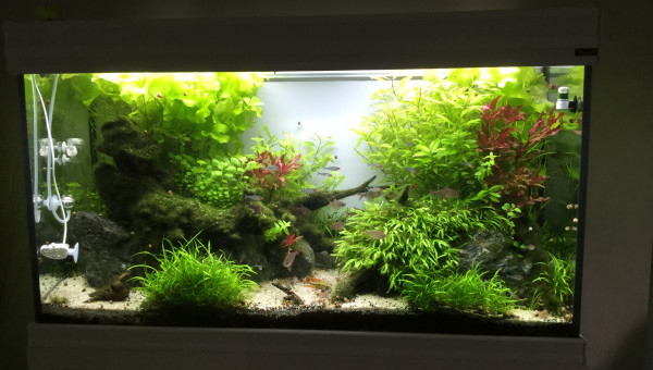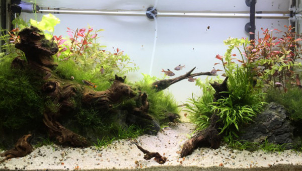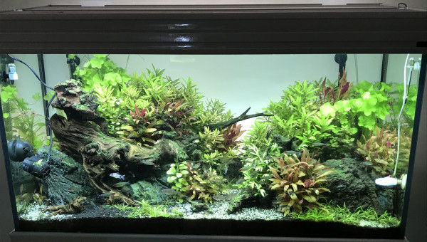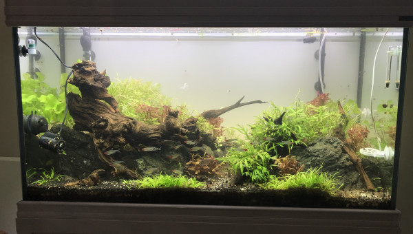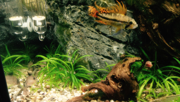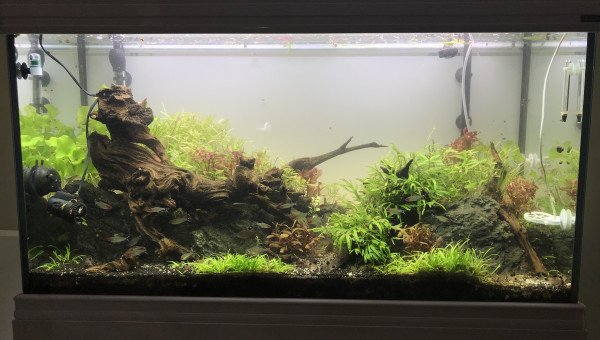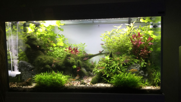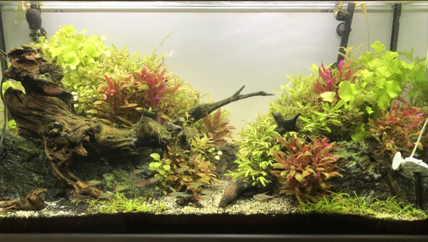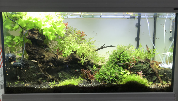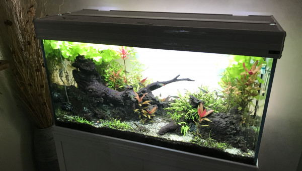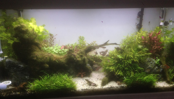 Le bac n'est pas au top de sa forme après le passage d'une cyanobacterie... Je dois replanter un peu et remettre des mousses ;)