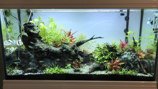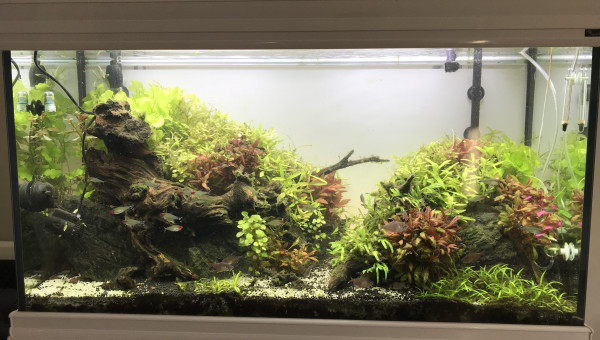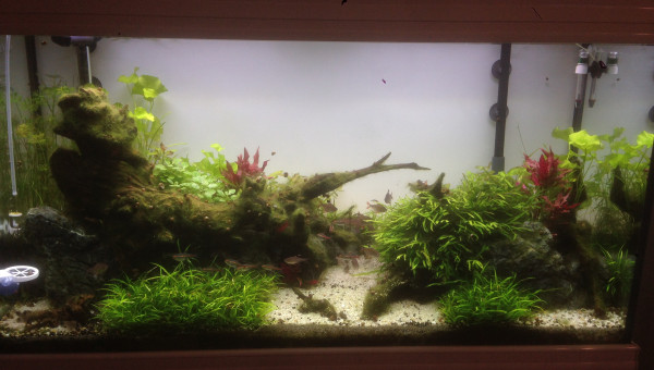 Taille, changement d’eau, réparation d’une rampe, ajout d’un timer sur ma pompe de brassage (3 à 5 heures par jour), nettoyage vitres, siphonnage, fertilisation