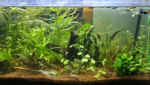 Guppy, molly et autres vivent pleinement dans un bac très planté.