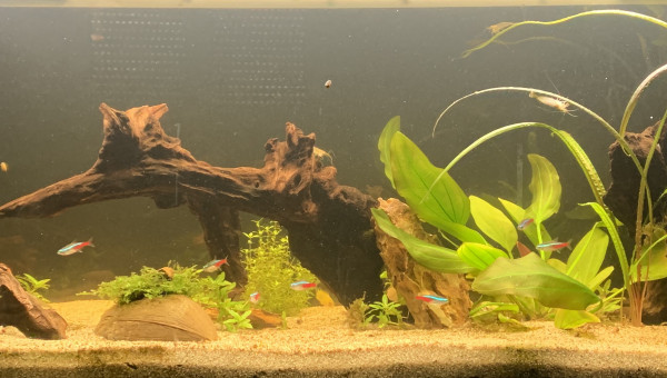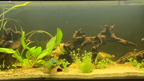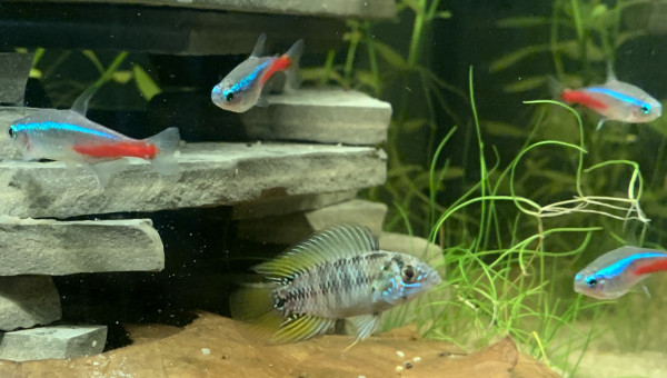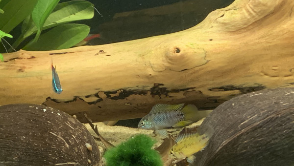 Tout le monde se porte à merveille. Au minimum 2 femelles borellii protègent leurs œufs :) peut-être même la troisième. Sans certitudes. « Longue vie au roi ! Le mâle fait régner l’ordre d’une main de fer. Gare à vous, les Paracheirodon, si vous osez approcher son royaume ou sa nourriture ! La vélocité sera votre seule véritable alliée ! »