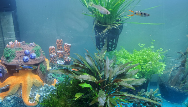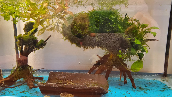 Love room pour guppy Endler 5 femelles y séjournent sur 1 mois Les mâles sont introduits max 3 jours à tour de rôle Pas de sol technique Toutes les plantes sont autonomes et déplaçables