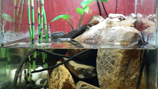 Le filtre du 100l arrive sur Cascade. Le 100l ne tourne plus que sur le Oase Thermo 200. Je vais modifier certainement l'agencement des cailloux mais globalement ça fonctionne. Je n'étais pas sûr que ça fonctionne bien avec le bac rempli à moitié. C'est de bon augure pour le projet de paludarium. Maintenant il y a deux filtrations dans ce bac qui doit contenir 20l d'eau : 1. Les cailloux reposent sur de la pouzzolane. L'aspiration de la pompe se charge de créer le flux d'eau nécessaire. Avant changement, c'était juste une pompe. 2. Le Sunsun hw 803b Tout ça pour des crevettes. C'est surdimensionné mais l'objectif est de préparer et expérimenter pour le futur palu qui fera 100l brut. 50l net avec crabes, crevettes et quelques petits poissons.