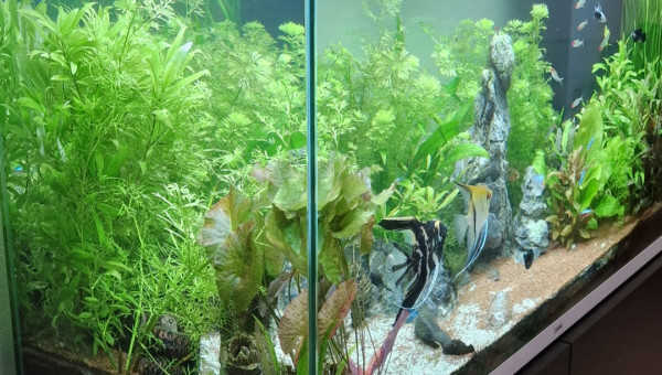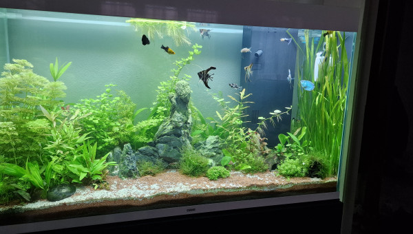 Hello. Voila je voulais votre avis bienveillant pour mon premier aquarium. 3 gouppy 6 molly 4 scalaires (mal conseillé au magasin) 3 gourami 4 corydoras 2 Ancistrus 4 ou 5 crevettes ( elles se cachent bien)