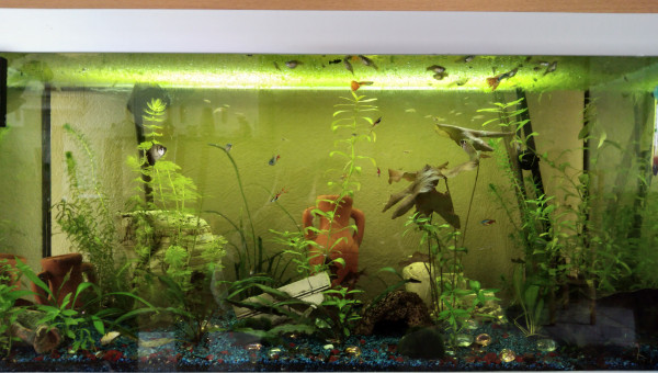 Ben voilà, un an plus tard, après avoir récupéré auprès d'un particulier cet aquarium en piteuse état avec des poissons malades, je suis arrivée à un bac bien planté avec un cycle naturel quasiment parfait (sans filtre), une population contrôlée. Je suis assez fière du résultat ! Dire que j'étais débutante mdr