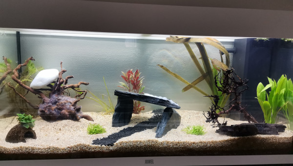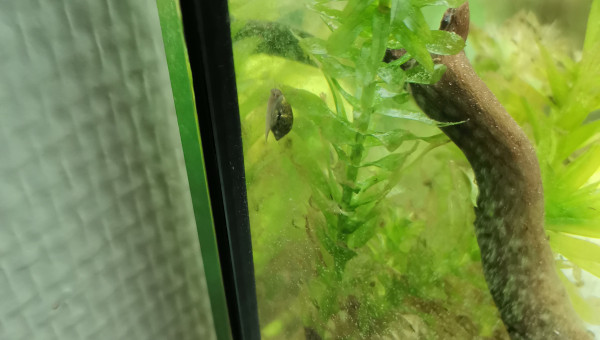 Découverte de 2 alevins, j'avais remarqué des œufs roses sous la noix de coco mais je ne me souviens plus quels étaient les poissons dans le bac quand j'ai acheté. Je pense à du corydora on verra en grandissant