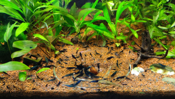 Aquarium spécifique crevettes bleue velvet avec daphnies, planorbes et melanoides