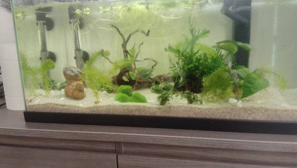 Crevettes red Cherry X5 et novembre introduction de 5 platy rouge.a priori 2 mâles et 3 femelles naissance un bébé disparu Ce mercredi 8 janvier naissance de dizaine alevins Séparation petit aquarium