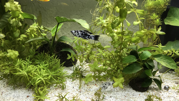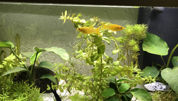 5 mollys, un tout noir, un dalmatien avec beaucoup de noir, un autre dalmatien avec beaucoup de blanc et deux jaunes, sans compter les escargots.