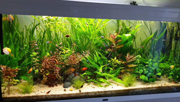 Suite à un changement d aquarium ,passé d un 80 l à un 234 l, je vous posté mon nouvelle aquarium mise en eau hier soir avec l eau de l ancien aquarium plus rajout d eau du robinet mélangé avec du conditionneur . En poisson il y a 1 molly et 2 platy suivi d alevins et aussi des alevins d endler . Escargot présent ainsi que crevettes, maintenant j attend que le cycle se fasse .