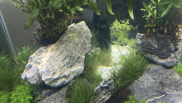 Hélas, l'intégration de ces 10 crabes est un échec. Rapidement dissimulés dans la mousse de java présente sur une racine, plus de signe de vie. J'ai juste eu "la chance" de découvrir un cadavre d'un petit crabe pour l'instant. Je n'incrimine pas mon Betta mais plus un problème de qualité d'eau. Etre débutant c'est apprendre.