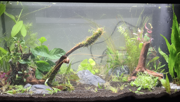 Mise en place dans la classe de mon fils d'un petit bac de 60 litres communautaires, bien planté. En attente pour mettre poissons en janvier