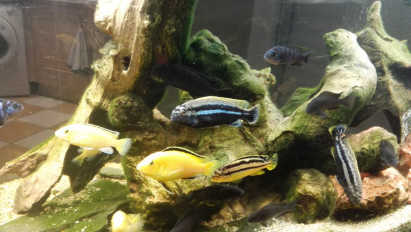 Suite a casse bac vitre fond fendue achat nouvelle cuve idem et peuplement malawi Plusieurs pertes. Reste un male melanichromis auratus et deux femelles première reproduction 13 juveniles en devellopement dans petit bac a part