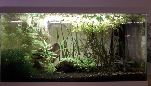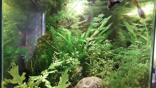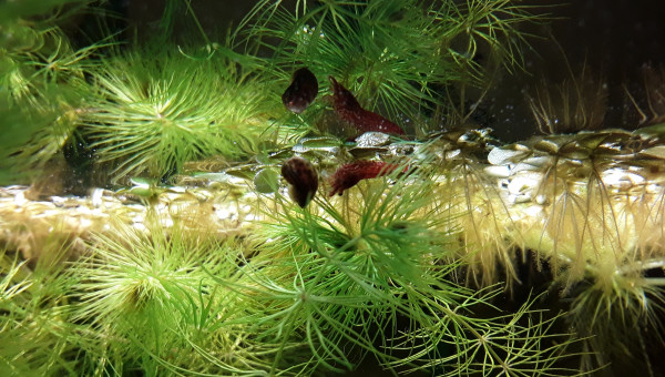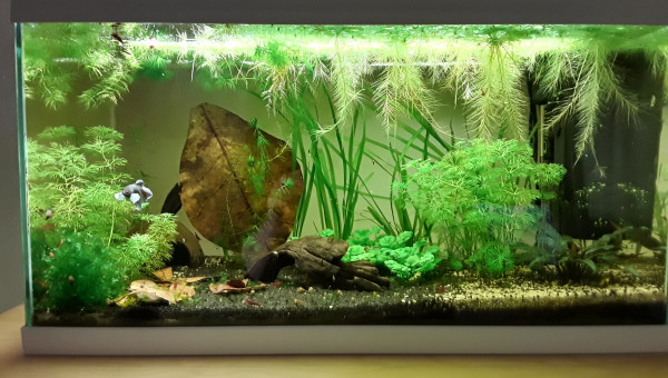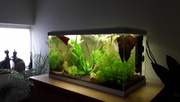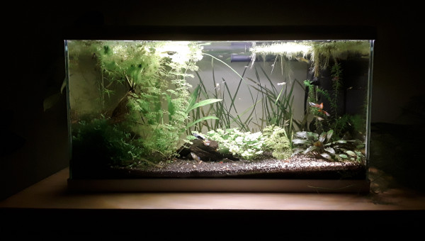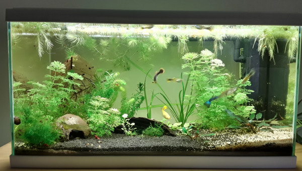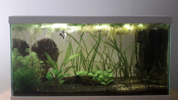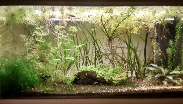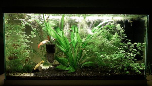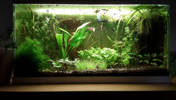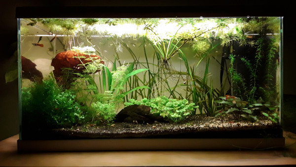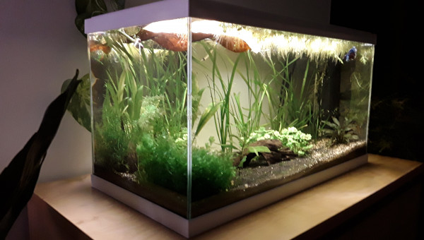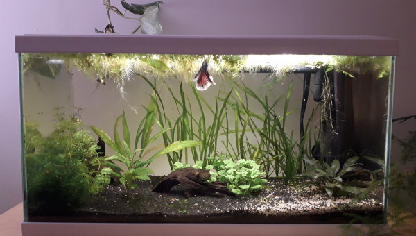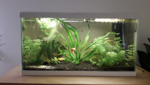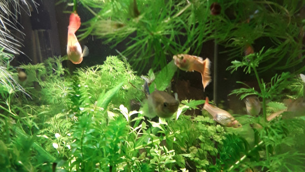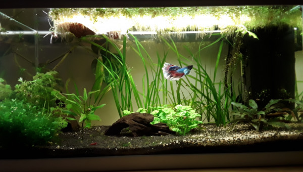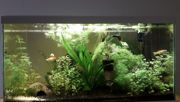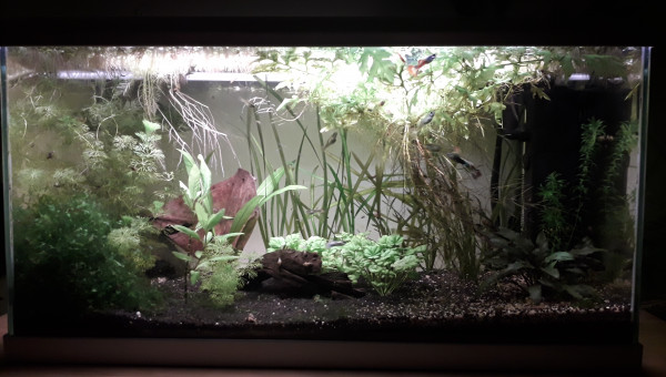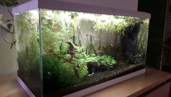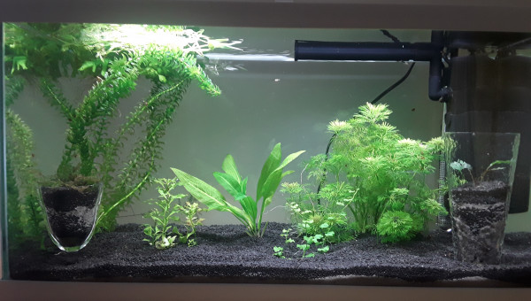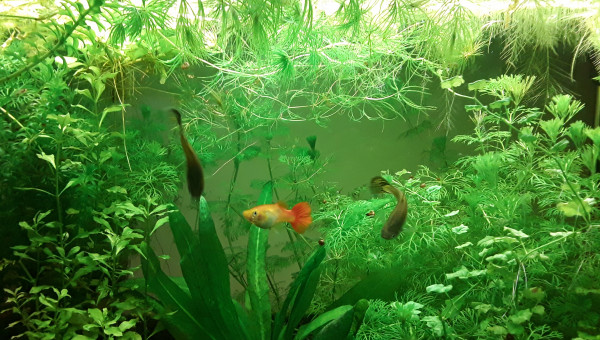 Suite à une invasion d'hydres (dont je n'arrive pas à savoir comment elles sont arrivées là... ) j'ai dû virer mon echinodorus il y a 3 jours. Une de mes guppynettes (rouge) est aussi arrivée au bout de sa vie. Un nettoyage minutieux, un gros changement d'eau et quelques petites plantations plus tard, je croise les doigts pour les hydres, je n en détecte plus depuis deux jours :)