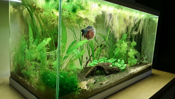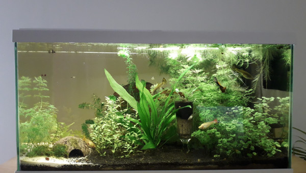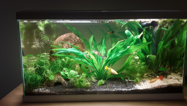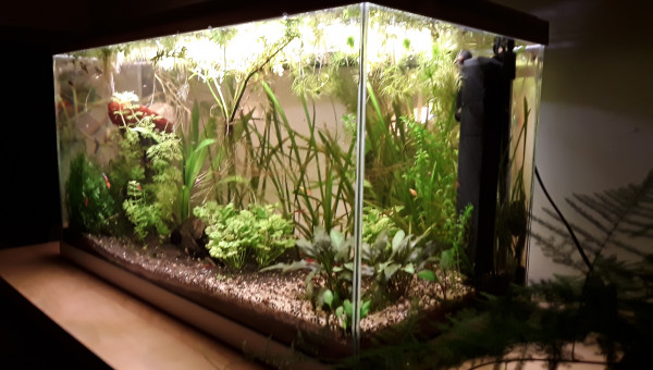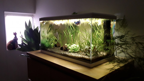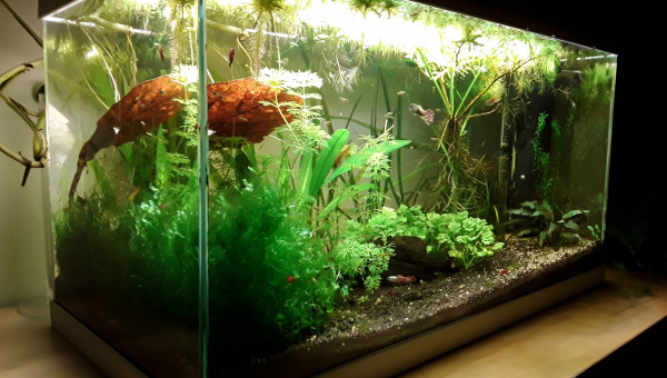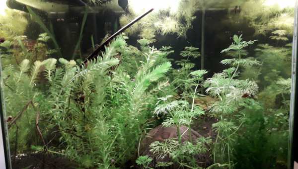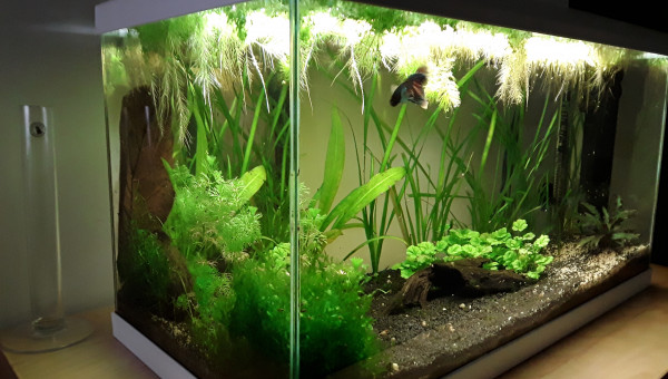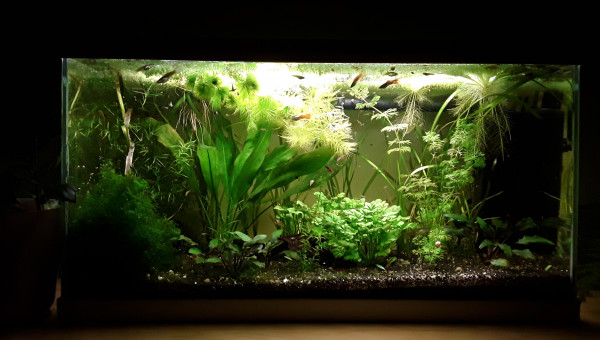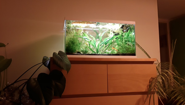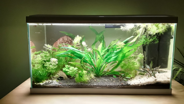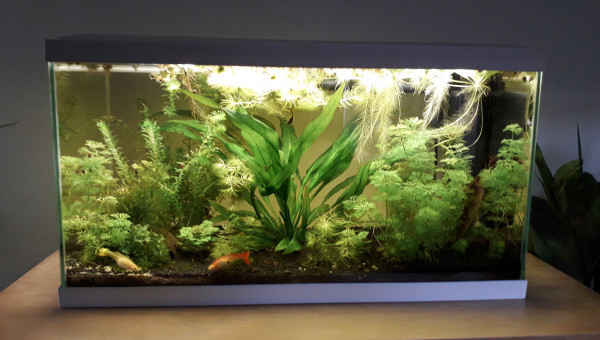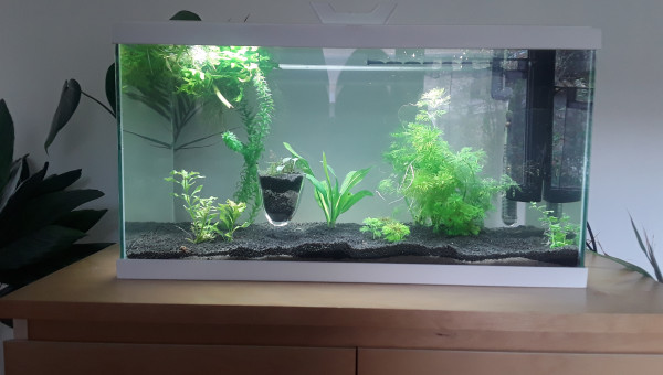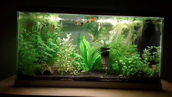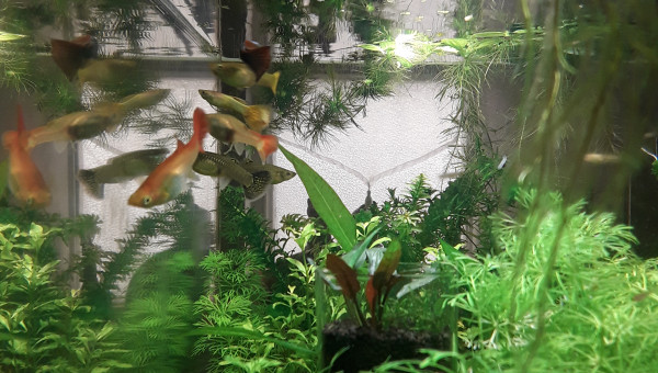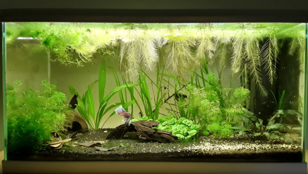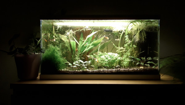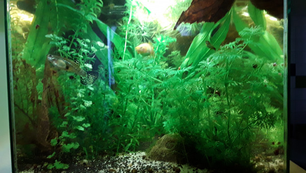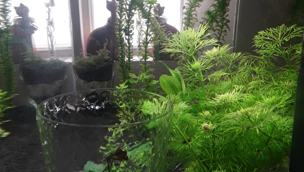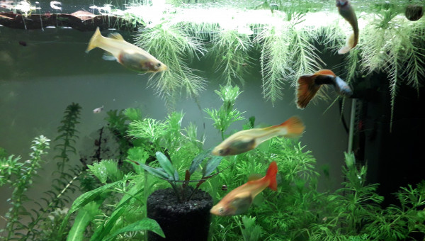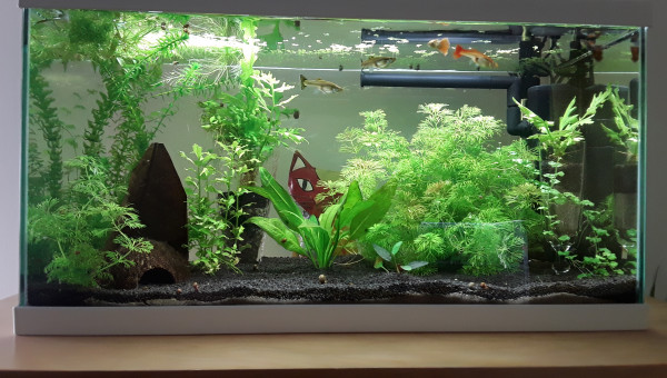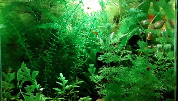 Suite à une invasion d'hydres (dont je n'arrive pas à savoir comment elles sont arrivées là... ) j'ai dû virer mon echinodorus il y a 3 jours. Une de mes guppynettes (rouge) est aussi arrivée au bout de sa vie. Un nettoyage minutieux, un gros changement d'eau et quelques petites plantations plus tard, je croise les doigts pour les hydres, je n en détecte plus depuis deux jours :)