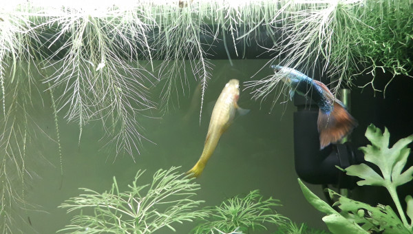 Ça pousse ici aussi, malgré arrêt total d'engrais depuis 3 mois :) par contre ma guppynette rouge nage verticalement avec la tête en bas, quand bien même elle parvient à se remettre à l'horizontale en cas de distribution de bouffe, elle se remet la tête en bas dès qu' elle peut. Une idée du pourquoi ? Tous les autres vont bien ?!