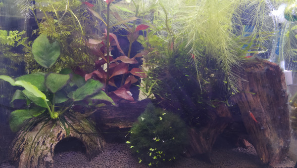 Tout le monde sera transféré dans le 90l quand il sera prêt. Acheté d occasion tout équipé avec 8 crevettes.. j ai ensuite rajouté 6 normani qui m ont fait la surprise de 4 alevins. J'ai maintenant une vingtaine de crevettes..