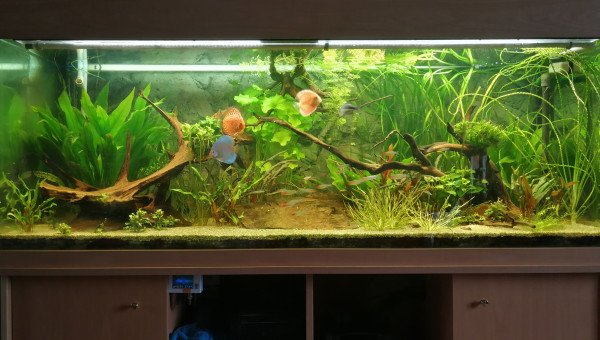 Bac pour discus. Faune amazonienne, flore multi-géographique