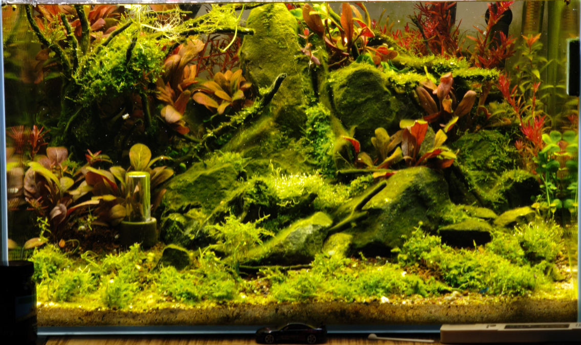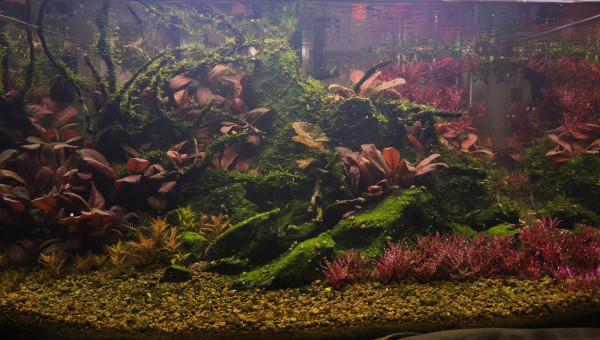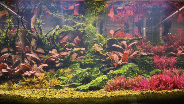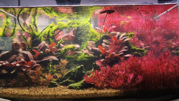 Aquarium réalisé le 16 août. Filtre cyclé Eau provenant d'un autre aquarium à température équivalente 23°.... Déjà enrichi en engrais, minéraux etc... 530us. Rampe Led x2.... 99 watts...aux alentours de 16000 lumens. Éclairer 12h/jour. Plantes adaptés aux bac mis en route. Toutes proviennent de mes bacs. Diffusion de Co2 a hauteur de 20mg. Engrais pour débuter en EI... (estimative index) Passage en PPS PRO d'ici 2 mois.