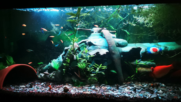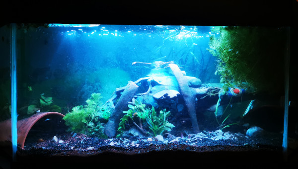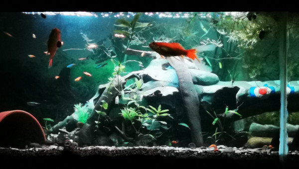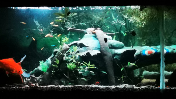 C'est mon premier aquarium, j espère y faire cohabiter des poissons rouges et des tanichtys ainsi que 2 ancistrus.