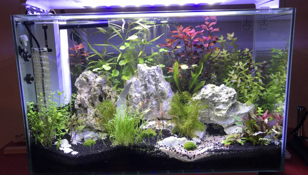 Home110 avec osmoseur ,80 plantes, roches Sainte-Croix, 95% de substrat découvert ,filtration d’origine. 10 crevettes davidis + 7 otocinclus.