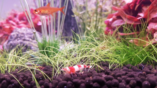 Pas mal de changements depuis mes dernières photos il y a plus d'un an. J'ai retiré la majeure partie de l'utricularia graminifolia. C'est une plante que j'apprécie beaucoup mais qui malheureusement est beaucoup trop envahissante. J'en ai laissé sur la droite du bac, et je l'ai remplacé par de l'Eleocharis acicularis 'Mini'. J'ai rajouté pas mal d'Eriocaulon cinerum "polaris", les premiers que j'avais rajouté au début du bac n'avaient pas survécu à cause de l'utricularia justement. Ceux là on l'air de se plaire à merveille. J'ai ajouté 5 caridinas multidentata, 10 crystal red shrimps, 11 tetras amandae et quelques planorbes. Il n'y a plus qu'à attendre que l'eleocharis colonise le bac ! Prochaines étapes, je remplace le filtre par un filtre avec chauffage pour enlever le thermoplongeur qui gâche tout et j'ajoute un diffuseur de CO2 externe pour pouvoir retirer l'actuel du bac.
