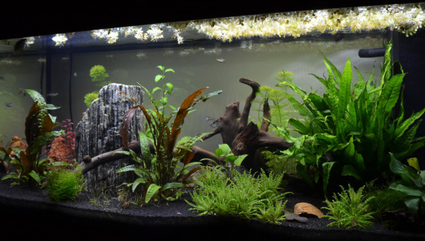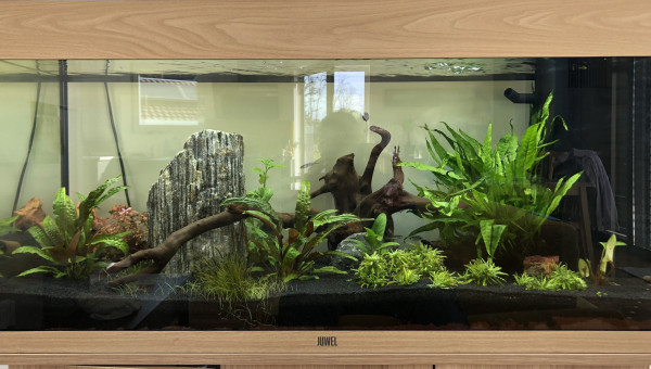 Juwel Rio 180 L fraîchement mis en eau. (4 semaines). Pour le moment 8 Amano, 5 escargots, 8 denio.