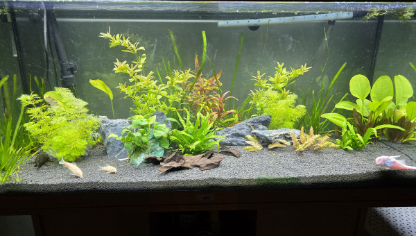 Rampe LED achetée récemment. Quelques soucis d'algues à cause d'un éclairage trop long suite au changement de rampe. Fuite au niveau du couvercle du filtre extérieur Tétra Ex 800, deuxième filtre avec le problème !! Remplacé par un Eheim experience 250. 2 corydoras, 3 ancistrus, 1 loche clown, 1 barbu