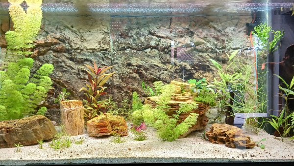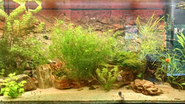 Aquarium communautaire avec population variée mais peu dense et non agressive (Rasbora Galaxy, crevettes, escargots, et crabe Limnopilos. Objectif : un bac agréable à regarder et avec très peu d'entretien en raison de la faible population, et aussi parce que je ne cherche pas à modifier les paramètres de l'eau, mais choisis flore et faune en fonction des paramètres existants.