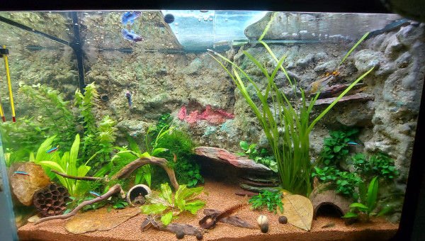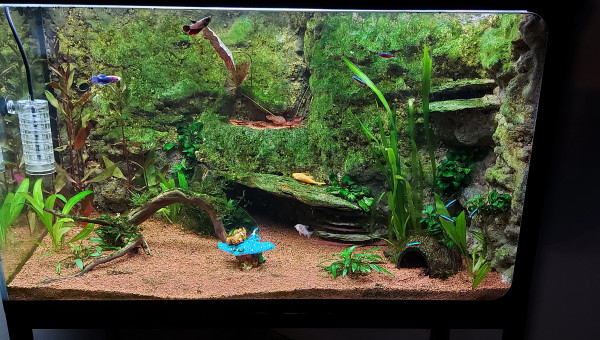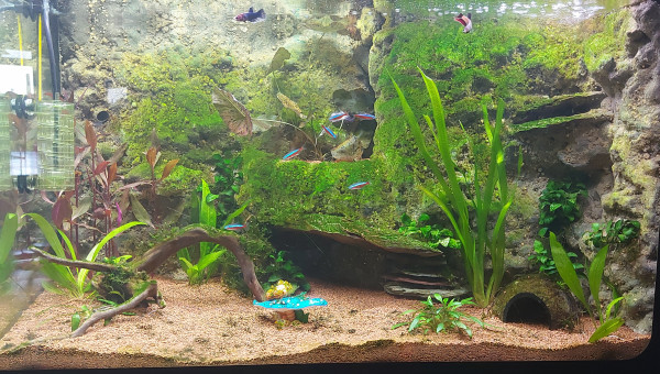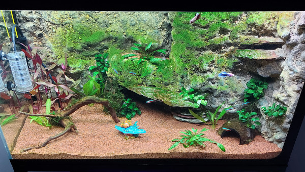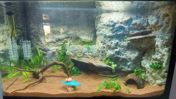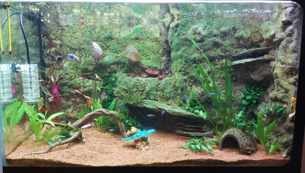 Voila ca avance le vivant est la depuis une semaine tout ce passe bien pour le moment aucun mort lors du transfer d aquarium ni avec les nouveaux assez content.changement d éclairage 2 rampes led avec dimmeur pour géré les deux rampes .ajout d une pompe avec spray bar pour l oxygène et brassage de surface. J ai rajouté des plantes d autres doivent encore arriver.j aime bien la couleur verte qu'à pris la roche lors du cyclage trop de lumiere + une temperature trop haute ,ca me derange pas ca fait naturel et ca fait le bonheur des otocinclus