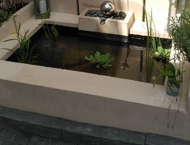 Bac préformé dans un cadre en béton.