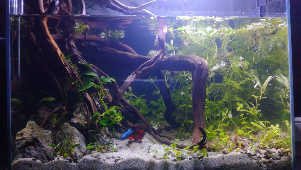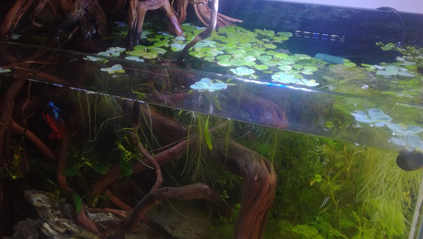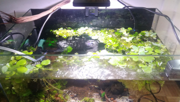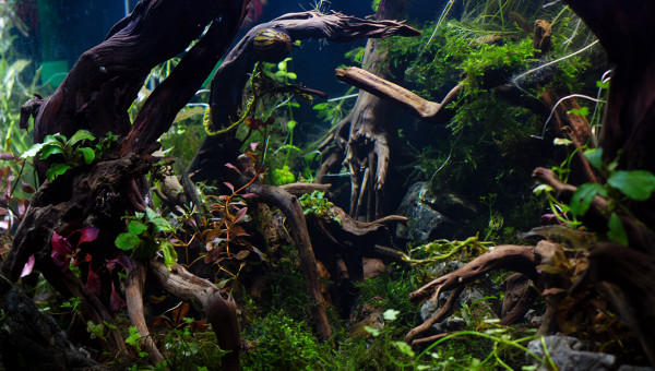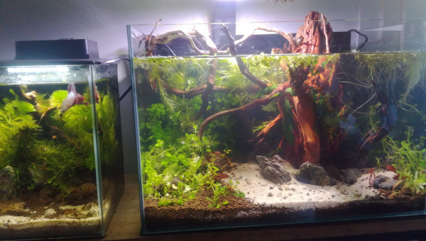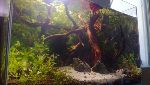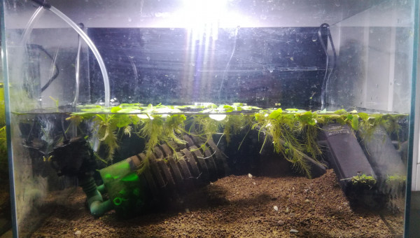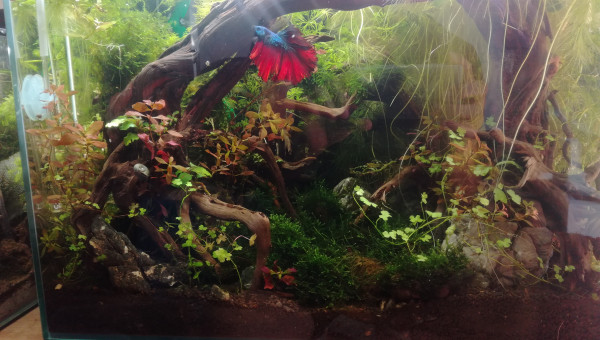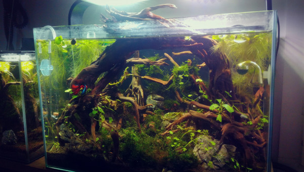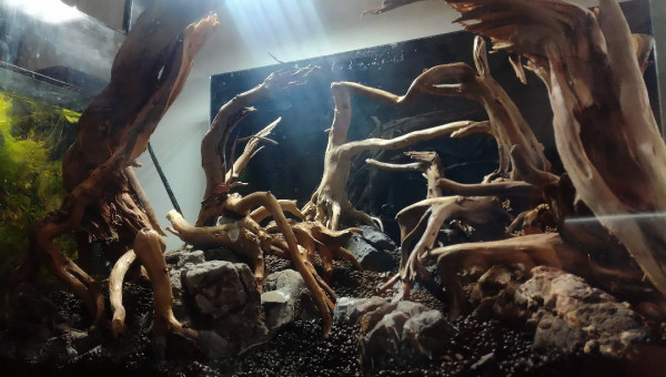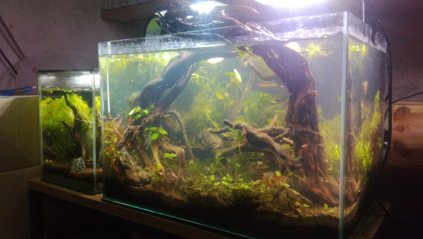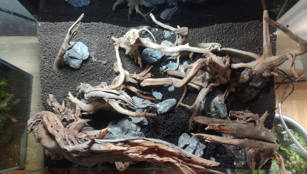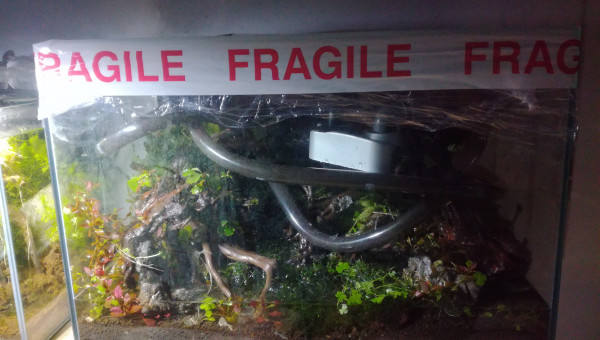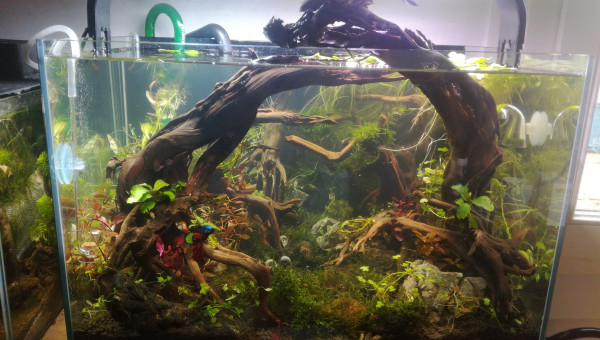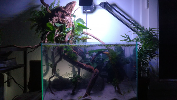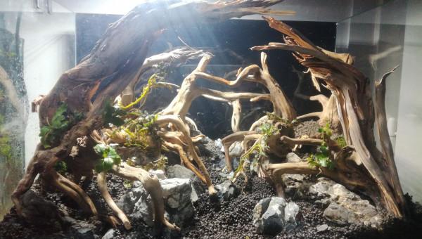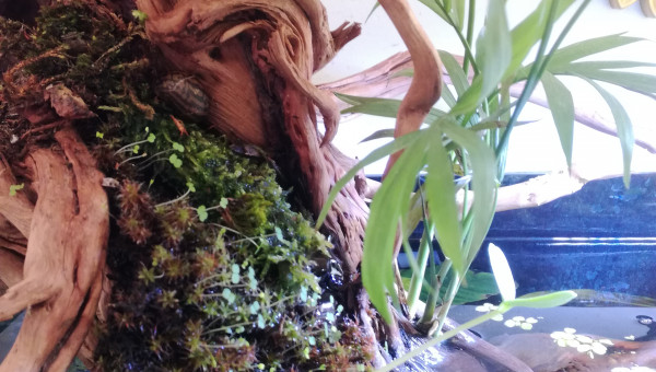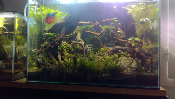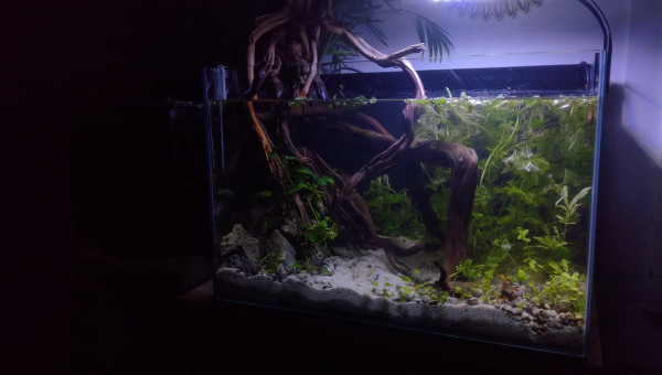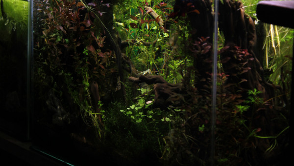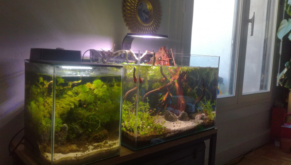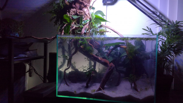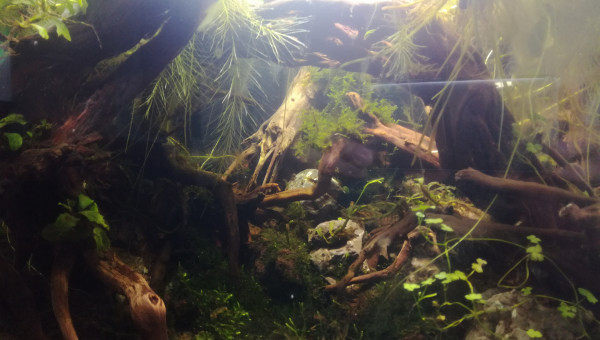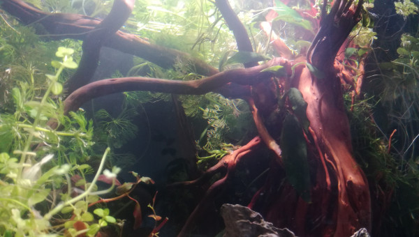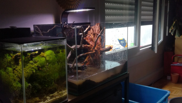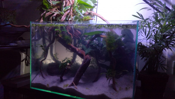 Des petites news de la forêt millénaire. J'ai changé une partie du hardscape. Il n'est pas encore arrangé comme il faut. Je laisse un peu la nature faire. Je déménage bientôt, aussi je ferai mieux le hardscape une fois arrivé à destination. Se faisant les pierres supportant les différentes mousses se sont mélangés. J'attend que ça pousse pour les replacer. Après la fameuse Advanced Bear Method® le pic de nitrite est venu la première semaine. Je vais faire quelques tests, certainement un changement d'eau et si tout va bien captain et les amanos vont intégrer de nouveau le bac.