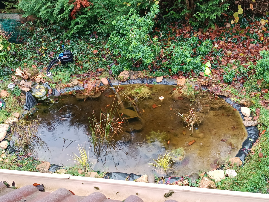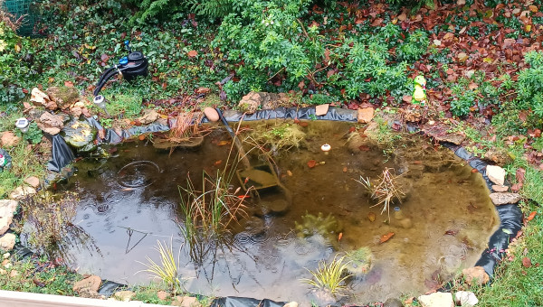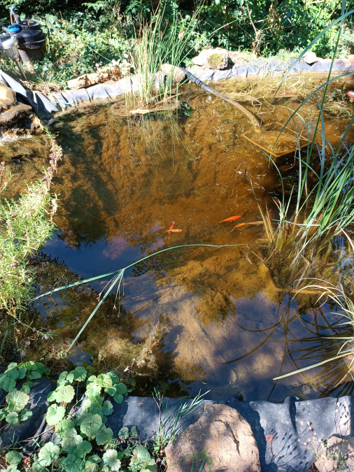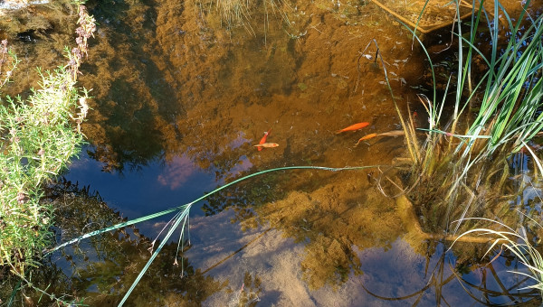 Une mare, une vraie, avec des plantes et des poissons rouges.