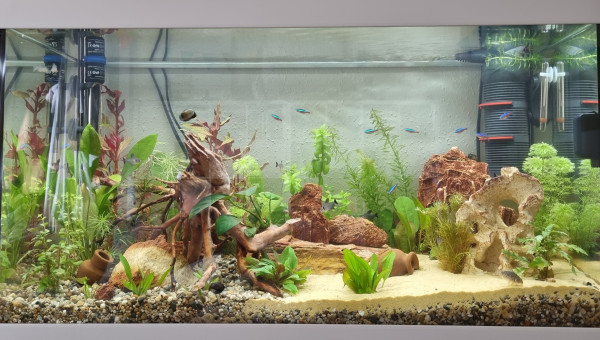 Après deux mois, une végétation luxuriante ! Paramètres de l'aquarium au top ! Et habitants heureux !